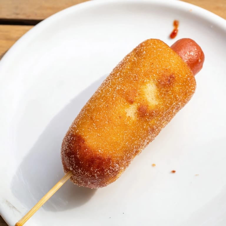 The sweet corn batter is what separates homemade corn dogs from the frozen ones everyone's had a hundred times. That sugar isn't hiding—it caramelizes slightly as the cornmeal fries, creating these little sweet notes that shouldn't work but absolutely do. The key is not overworking the batter once you mix wet and dry; just whisk until smooth and stop before your instinct says to keep going.