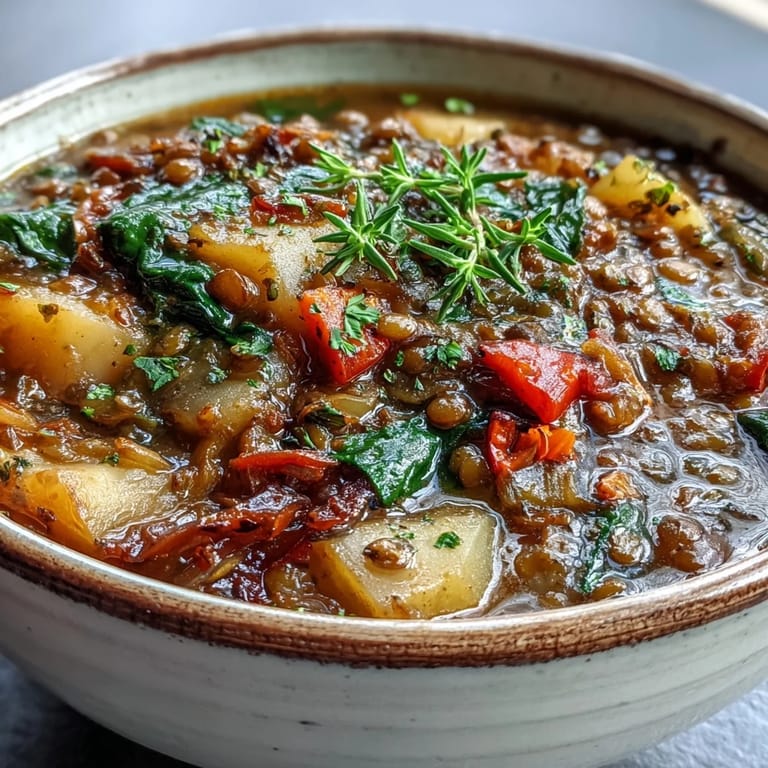 Save The first time I simmered this stew the kitchen filled with an earthy aroma that immediately lowered my stress levels. It was a Tuesday evening when the rain would not stop and I just wanted something that felt like a warm hug. I pulled a jar of lentils from the back of the pantry and started chopping whatever was in the crisper drawer. By the time the pot was bubbling the whole house felt cozy. This dish has since become my go to remedy for cold toes and long days.