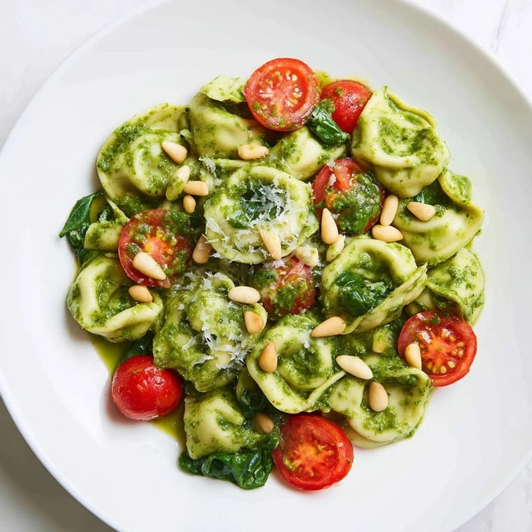 Save I threw this together on a Sunday afternoon when the farmer's market haul was threatening to wilt on my counter. The basil in my pesto was so fragrant it filled the entire kitchen before I even opened the jar. I tossed warm tortellini with cold tomatoes and watched the spinach wilt just slightly from the residual heat. It was supposed to be a side dish, but we ate the whole bowl standing at the counter with forks, laughing at how quickly it disappeared.