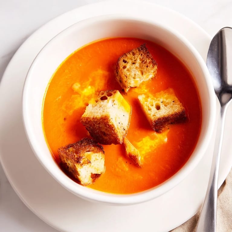 Use plant-based butter and cheese alternatives for the croutons, and substitute cream with coconut milk, oat milk, or cashew cream in the soup. Many quality vegan cheeses melt beautifully now—look for ones marketed for cooking.
