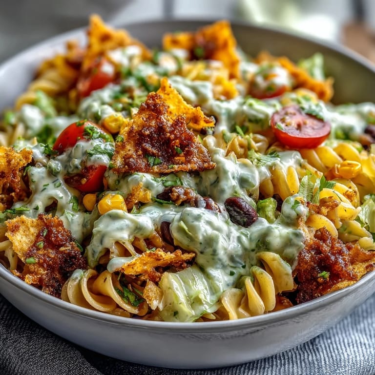 For extra protein, add cooked and seasoned ground beef, turkey, or grilled chicken. Substitute Greek yogurt for mayonnaise and sour cream to lighten the dressing. Spice lovers can add jalapeños or hot sauce. For those with dietary restrictions, use gluten-free pasta and gluten-free chips.